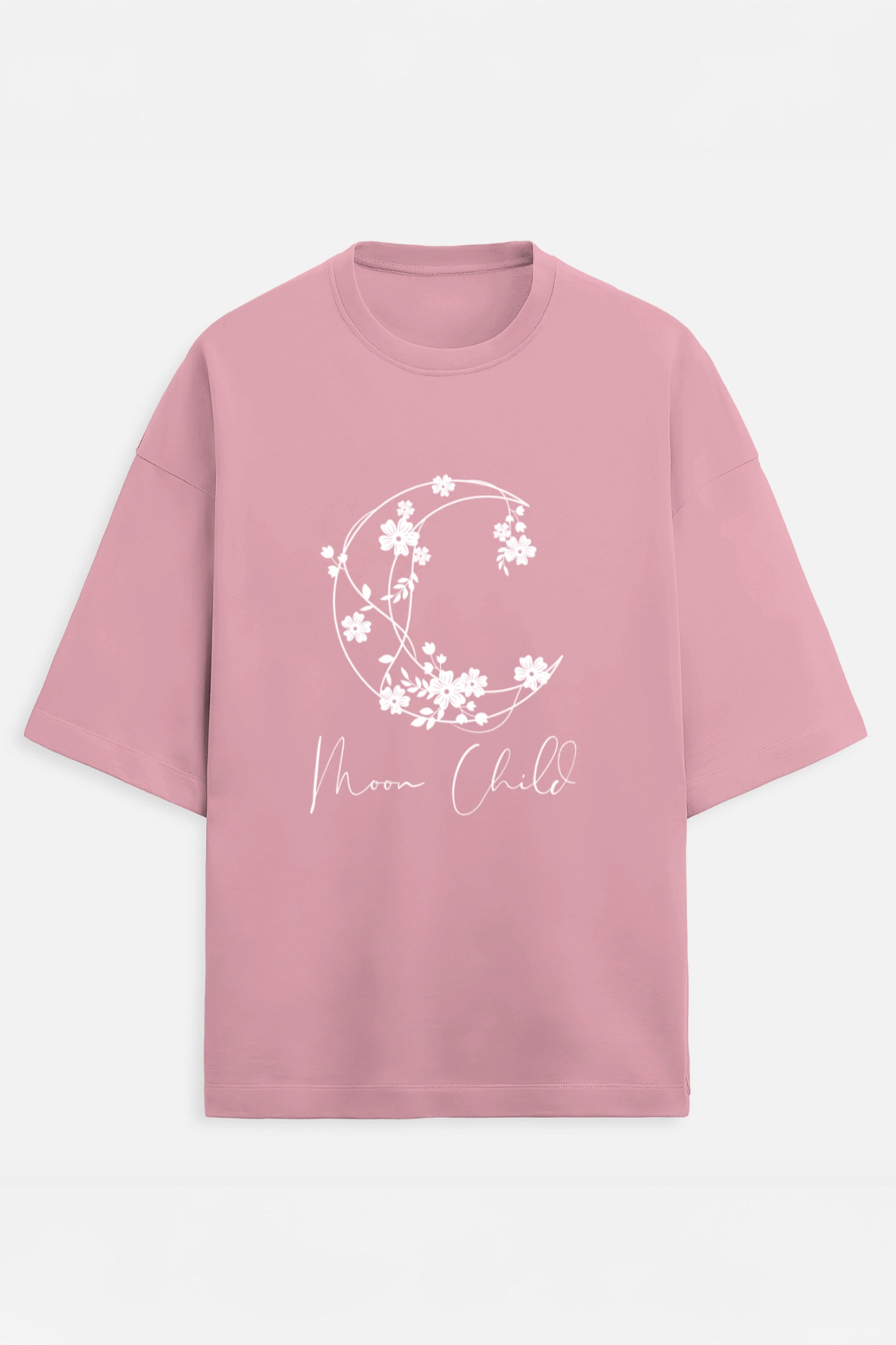 Moon Child White Terry Design Oversized Tee